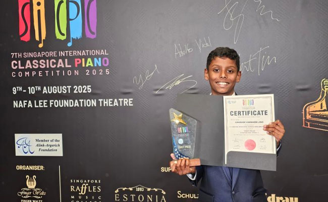 അയര്ലണ്ടിലെ മലയാളി സമൂഹത്തിനാകെ അഭിമാനമായി 10 വയസുകാരനായ അഭിഷേക് ജിനോ. 2025 സിംഗപ്പൂര് ഇന്റര്നാഷണല് പിയാനോ കോംപറ്റീഷനില് കാറ്റഗറി സി-യില് ഒന്നാം സ്ഥാനം നേടിയിരിക്കുകയാണ് ന്യൂകാസില് വെസ്റ്റില് താമസിക്കുന്ന അഭിഷേക്.
