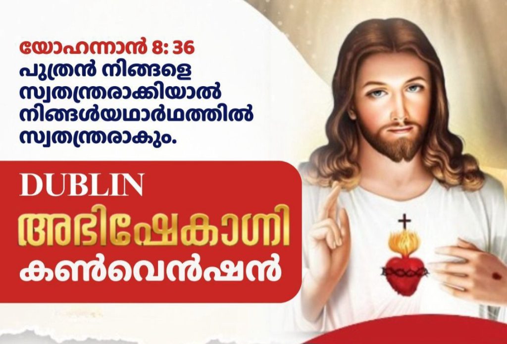 ഡബ്ലിൻ : ബഹുമാനപ്പെട്ട സേവ്യർ ഖാൻ വട്ടായില് അച്ഛനിലൂടെ പരിശുദ്ധാത്മാവ് തുടക്കം കുറിക്കുകയും കഴിഞ്ഞ രണ്ട് ദശാബ്ദങ്ങളായി കേരള കത്തോലിക്ക സഭയില് ആത്മീയ ഉണര്വിന് കാരണമാവുകയും ചെയ്ത അഭിഷേകാഗ്നി വചന ശുശ്രൂഷ ഡബ്ലിനില് നടത്തപ്പെടുന്നു. യുകെ ഉള്പ്പെടെയുള്ള ലോകത്തിന്റെ വിവിധ രാജ്യങ്ങളില് നടന്നുവരുന്ന അഭിഷേകാഗ്നി വചന ശുശ്രൂഷ 2026 ജനുവരി നാലാം തീയതി ഡബ്ലിന് 5-ലെ സെന്റ് ലൂക്ക് ദേവാലയത്തില് 1:30 pm മുതല് 5:00 pm വരെയാണ് ഒരുക്കിയിരിക്കുന്നത്.