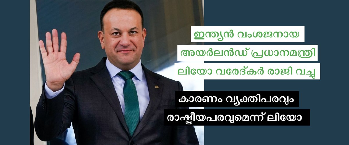 അയർലൻഡ് പ്രധാനമന്ത്രി ലിയോ വരദ്കർ രാജിവച്ചു. ഇന്ന് രാവിലെ ചേർന്ന പ്രത്യേക മന്ത്രിസഭാ യോഗത്തിനു ശേഷമാണ് രാജി സമർപ്പിക്കുന്നതായി അദ്ദേഹം അപ്രതീക്ഷിത പ്രഖ്യാപനം നടത്തിയത്. വ്യക്തിപരവും, രാഷ്ട്രീയവുമായ കാരണങ്ങളാലാണ് രാജി എന്ന് വികാരഭരിതമായ പ്രഖ്യാപനത്തിൽ വരദ്കർ വ്യക്തമാക്കി.