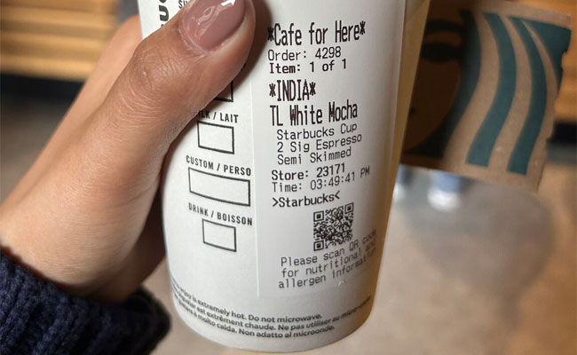സാധാരണയായി ഓര്ഡര് നല്കുമ്പോള് ഉപഭോക്താവിനോട് പേര് ചോദിച്ച്, അത് കപ്പില് രേഖപ്പെടുത്തുകയാണ് ചെയ്യാറുള്ളത്. ശേഷം ഓര്ഡര് തയ്യാറാകുമ്പോള് പേര് വിളിക്കും.