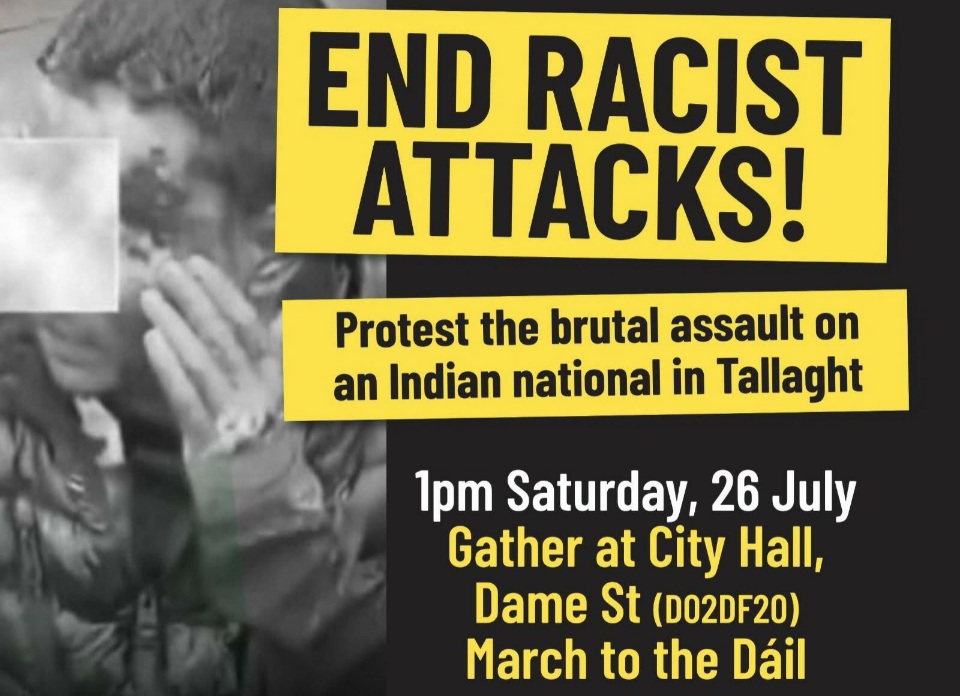 അതിനിടയിൽ കഴിഞ്ഞ ആഴ്ച താലയിൽ ഇന്ത്യക്കാരൻ വംശീയ ആക്രമണത്തിനാണ് ഇരയായത് എന്ന് ഗാർഡ സ്ഥിരീകരിച്ചു. സംഭവത്തിൽ ഇതുവരെ ആരെയും അറസ്റ്റ് ചെയ്തിട്ടില്ല. അന്വേഷണം നടത്തിവരികയാണ് എന്ന് ഗാർഡ അറിയിച്ചു. സംഭവത്തിൽ പ്രതിഷേധിച്ച് ഡബ്ലിനിൽ ഇന്നലെ രണ്ട് സമര പരിപാടികൾ നടന്നു.