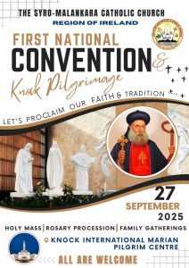 2025 സെപ്റ്റംബർ 27-ന് Knock International Marian Pilgrim Centre-ല് വച്ചാണ് സഭയുടെ ദേശീയ കൺവൻഷൻ നടക്കുക. വിശുദ്ധ കുര്ബാന, റോസാരി പ്രൊസഷന്, കുടുംബസംഗമം എന്നിവ കണ്വന്ഷന്റെ ഭാഗമായി ഉണ്ടായിരിക്കും. അയർലണ്ടിലുള്ള നമ്മുടെ എല്ലാ മലങ്കര കുടുംബങ്ങളുടെയും കൂടിവരവായിട്ടാണ് ഈ വർഷം മുതൽ പരിപാടി ക്രമീകരിക്കുന്നത്. കണ്വന്ഷനിലേയ്ക്ക് എല്ലാവരെയും ഹൃദയപൂർവ്വം സ്വാഗതം ചെയ്യുന്നതായി സംഘാടകര് അറിയിച്ചു.