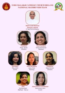 ഡബ്ലിൻ: അയർലണ്ടിലെ സീറോ മലബാർ സഭയുടെ നാഷണൽ മാതൃവേദിയുടെ പുതിയ ഭാരവാഹികൾ ചുമതലയേറ്റെടുത്തു. ഒക്ടോബർ 1-ാം തീയതി നാഷണൽ ഡയറക്ടർ ഫാ. സജി പൊന്മിനിശ്ശേരിയുടെ അധ്യക്ഷതയിൽ ചേർന്ന യോഗത്തിലാണ് അടുത്ത രണ്ട് വർഷത്തേക്ക് ഭാരവാഹികളെ തിരഞ്ഞെടുത്തത്.