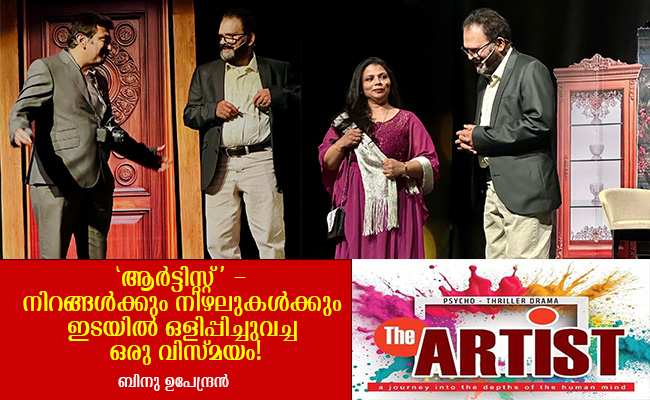 കഴിഞ്ഞ ദിവസം ഡബ്ലിൻ തപസ്യ (Dublin Thapasya) സിറോ മലബാർ ചർച്ച് ബ്ലാഞ്ചാർഡ്‌സ്‌ടൗണിനു വേണ്ടി അവതരിപ്പിച്ച “ആർട്ടിസ്റ്റ്” (The Artist) എന്ന നാടകം കാണാനിടയായി. കണ്ടിറങ്ങിയപ്പോൾ വെറുമൊരു നാടകം കണ്ടുതീർത്ത തോന്നലല്ല, മറിച്ച് മനസ്സിനെ പിടിച്ചുലച്ച, ചിന്തിപ്പിച്ച ഒരു വലിയ ‘തിയേറ്റർ അനുഭവം’ കൂടെക്കൊണ്ടുപോരുന്ന പ്രതീതിയായിരുന്നു. ഒരു സൈക്കോ-ത്രില്ലർ (Psycho-Thriller) എന്ന് കേൾക്കുമ്പോൾ പ്രതീക്ഷിക്കുന്ന ഉദ്വേഗത്തിനപ്പുറം, കണ്ണ് നനയിക്കുന്ന ഒട്ടേറെ മുഹൂർത്തങ്ങളും ശക്തമായ സാമൂഹിക സന്ദേശവും ഈ നാടകം നമുക്ക് സമ്മാനിക്കുന്നുണ്ട്.