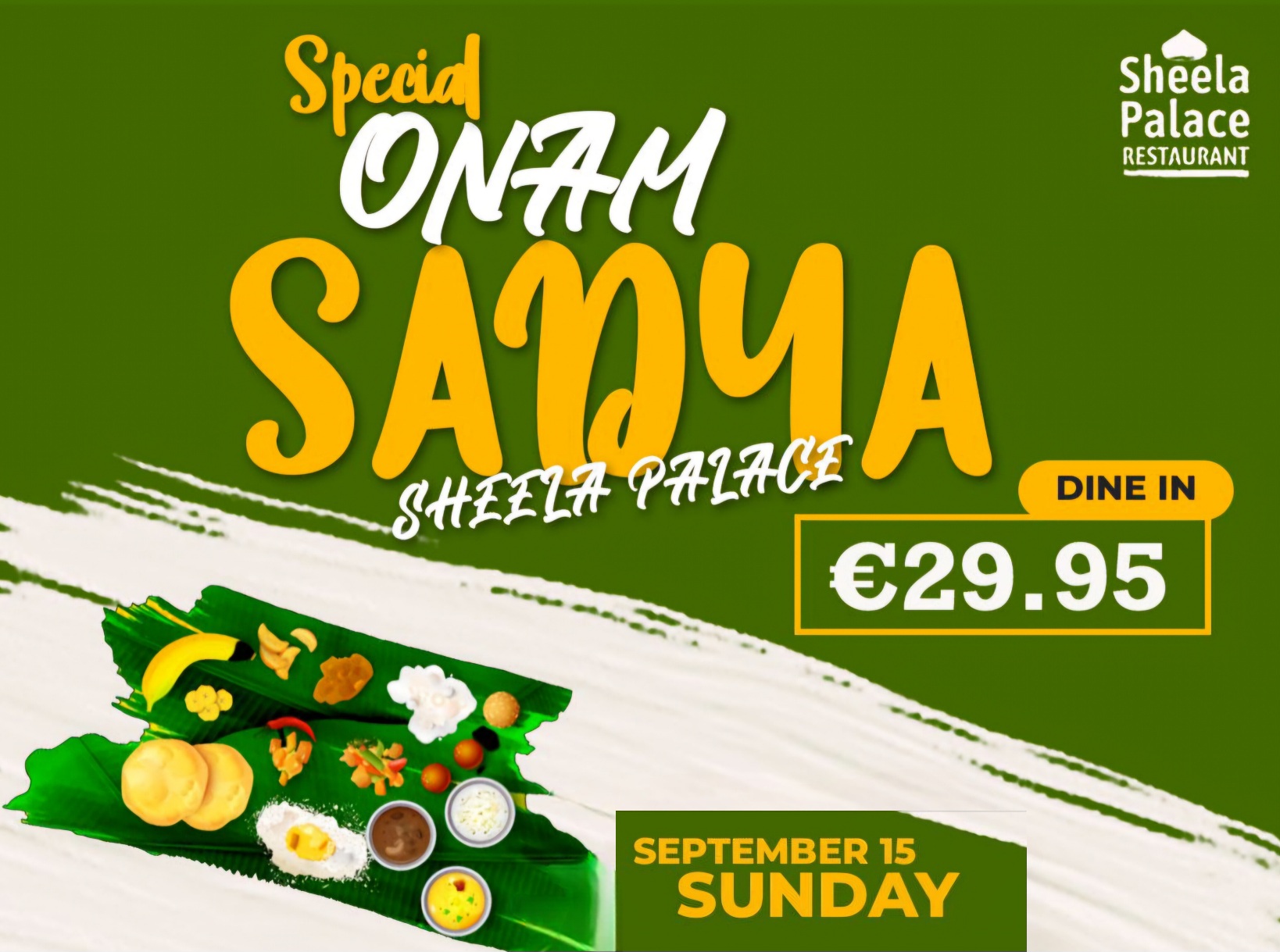 ഈ തിരുവോണത്തിനു ഇല നിറയെ വിഭവങ്ങളുമായി ഒരുഗ്രൻ സദ്യ ആയാലോ? മലയാളികളുടെ പ്രിയപ്പെട്ട ഷീലാ പാലസ് റസ്റ്ററന്റ് ഇതാ വെറും 29.95 യൂറോയ്ക്ക് വിഭവസമൃദ്ധമായ സ്പെഷ്യൽ ഓണ സദ്യയ്ക്കായി ഡൈൻ ഇൻ സൗകര്യം ഒരുക്കിയിരിക്കുന്നു.