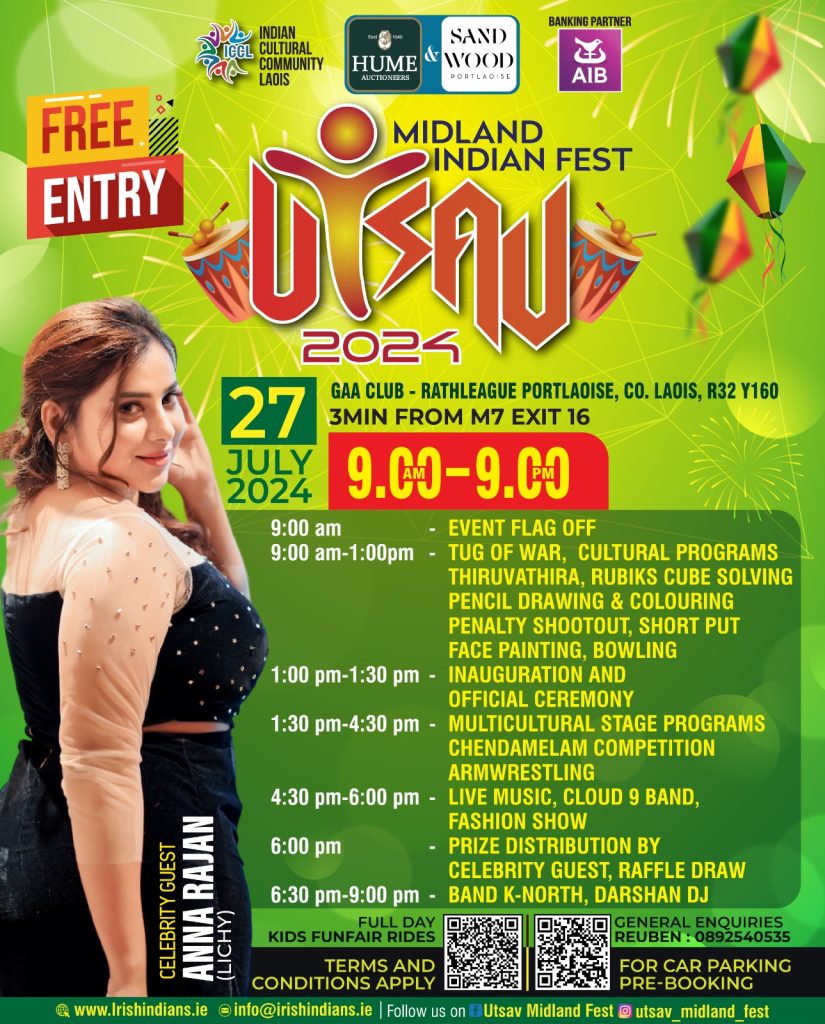 വമ്പൻ തയ്യാറെടുപ്പുകളുമായി നാളെ ശനിയാഴ്ച (ജൂലൈ 27) ഉത്സവ് 24-നു പോർട്ളീഷിൽ കൊടിയുയരുന്നു. ആഘോഷങ്ങൾക്കു മാറ്റുകൂട്ടുവാൻ സെലിബ്രറ്റി ഗസ്റ്റ് ആയി പ്രശസ്ത സിനിമ താരം അന്നാ രാജനും (ലിച്ചി) എത്തുന്നു.