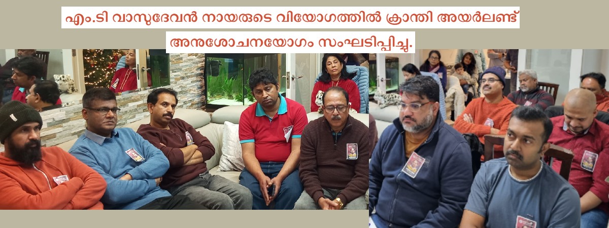 ക്രാന്തി ഡബ്ലിൻ നോർത്ത് യൂണിറ്റ് സംഘടിപ്പിച്ച അനുശോചനയോഗം ഡബ്ലിൻ,ഹോളിസ് ടൗണിൽ വച്ച് നടന്നു. യോഗത്തിൽ ക്രാന്തി കേന്ദ്ര കമ്മിറ്റി അംഗം ജീവൻ മടപ്പാട്ട് അധ്യക്ഷനായി.