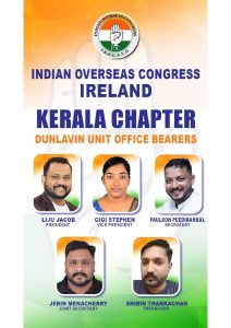 ഡബ്ലിൻ: ഇന്ത്യൻ ഓവർസീസ് കോൺഗ്രസ് (IOC) അയർലണ്ട് – കേരള ചാപ്റ്റർ ഡൺലാവിൻ യൂണിറ്റിന്റെ പുതിയ ഭാരവാഹികളെ തെരഞ്ഞെടുത്തതായി ഐഒസി നാഷണൽ പ്രസിഡന്റ് ലിങ്ക് വിൻസ്റ്റാർ മാത്യു അറിയിച്ചു.