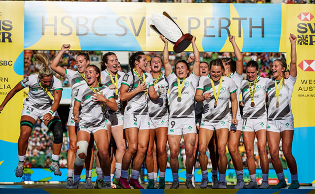 ചരിത്രത്തിലാദ്യമായി വനിതാ സെവന്സ് റഗ്ബി ലോകകിരീടം (HSBC SVNS Series tournament) നേടി അയര്ലണ്ട്. പെര്ത്തില് നടന്ന വാശിയേറിയ മത്സരത്തില് ആതിഥേയരായ ഓസ്ട്രേലിയയെ 19-14 എന്ന സ്കോറിന് തറപറ്റിച്ചാണ് അയര്ലണ്ടിന്റെ മിടുക്കികള് കിരീടം ചൂടിയത്. അയര്ലണ്ടില് നിന്നുള്ള ഒരു സെവന്സ് റഗ്ബി ടീം കിരീടം നേടുന്നതും ഇതാദ്യമായാണ്.
