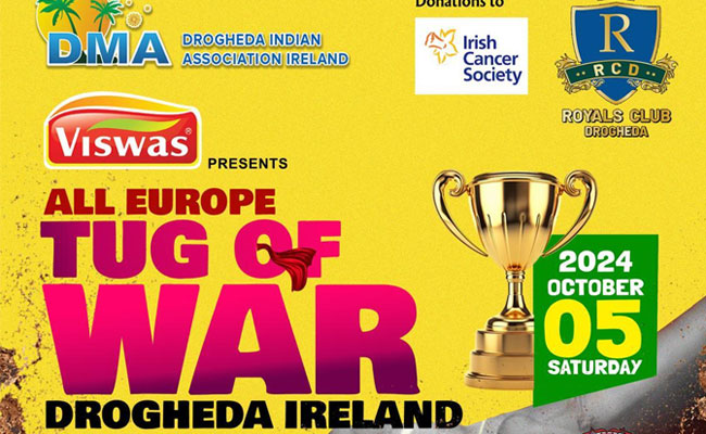 അയർലണ്ടിലെ ചരിത്ര പോരാട്ടങ്ങളുടെ ഓർമ്മകൾ ഉറങ്ങുന്ന പൗരാണിക പട്ടണമായ ദ്രോഹഡയിൽ, ദ്രോഹഡ ഇന്ത്യൻ അസോസിയേഷനും(DMA) റോയൽ ക്ലബ്ബ് ദ്രോഹഡയും സംയുക്തമായി ഒരുക്കുന്ന ഓൾ യൂറോപ്പ് വടംവലി മത്സരം ഒക്ടോബർ 5 ശനിയാഴ്ച 9:00AM മുതൽ 6:00PM വരെ നടത്തപ്പെടുന്നു. നിരവധി ചരിത്ര യുദ്ധപോരാട്ടങ്ങൾക് സാക്ഷിയായ ബോയ്ൺ നദി ഈ പോരാട്ടത്തിനും സാക്ഷിയാവും.
