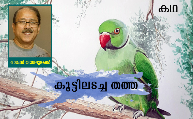 “ഇവന്റെ കാര്യത്തിൽ ഒരു തീരുമാനമെടുക്കാനാണ് ഞാൻ നിന്നെ നിർബന്ധിച്ചു വിളിച്ചു വരുത്തിയത്”, ഒരു കൂട്ടിൽ കുറുമ്പു കാണിച്ചു പിണങ്ങി നിൽക്കുന്ന മറ്റൊരു തത്തയെ ചൂണ്ടിക്കാട്ടി അമ്മ പറഞ്ഞു.