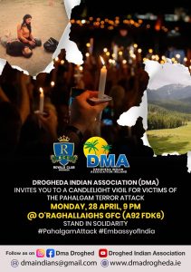 ഈ വരുന്ന തിങ്കളാഴ്ച്ച (28/04/2025) ദ്രോഗഡ O’Raghallaigh’s GAA Club ഓഡിറ്റോറിയത്തിൽ വൈകുന്നേരം 9.00 മണിക്ക് നടക്കുന്ന അനുസ്മരണത്തിലേക്ക് എല്ലാ രാജ്യ സ്നേഹികളെയും സ്വാഗതം ചെയ്യുന്നതായി സംഘാടകർ അറിയിച്ചു.