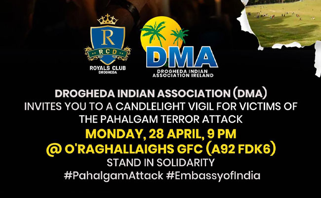 ഈ വരുന്ന തിങ്കളാഴ്ച്ച (28/04/2025) ദ്രോഗഡ O’Raghallaigh’s GAA Club ഓഡിറ്റോറിയത്തിൽ വൈകുന്നേരം 9.00 മണിക്ക് നടക്കുന്ന അനുസ്മരണത്തിലേക്ക് എല്ലാ രാജ്യ സ്നേഹികളെയും സ്വാഗതം ചെയ്യുന്നതായി സംഘാടകർ അറിയിച്ചു.