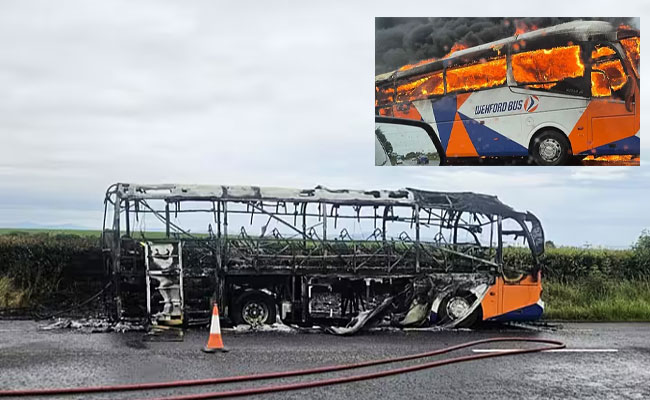 സംഭവത്തില് ഗാര്ഡ അന്വേഷണമാരംഭിച്ചിട്ടുണ്ട്. ബസിലെ സുരക്ഷാസംവിധാനങ്ങള് കൃത്യമായി പ്രവര്ത്തിച്ച് മുന്നറിയിപ്പ് നല്കിയതാണ് ആളുകളെ സുരക്ഷിതമായി ഒഴിപ്പിക്കാന് കാരണമായത്.
