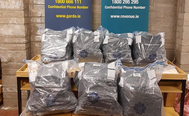 കൗണ്ടി കില്ഡെയറിലെ Athy-യില് 12.5 ലക്ഷം യൂറോയുടെ കഞ്ചാവുമായി രണ്ട് പേര് പിടിയില്. വ്യാഴാഴ്ച ഉച്ചയ്ക്ക് ശേഷം ഗാര്ഡ നടത്തിയ പരിശോധനയിലാണ് രണ്ട് യുവാക്കള് വന് കഞ്ചാവ് ശേഖരവുമായി അറസ്റ്റിലായത്. തുടര്പരിശോധനയില് 12,000 യൂറോ വിലവരുന്ന കൊക്കെയ്നും പിടിച്ചെടുത്തു.