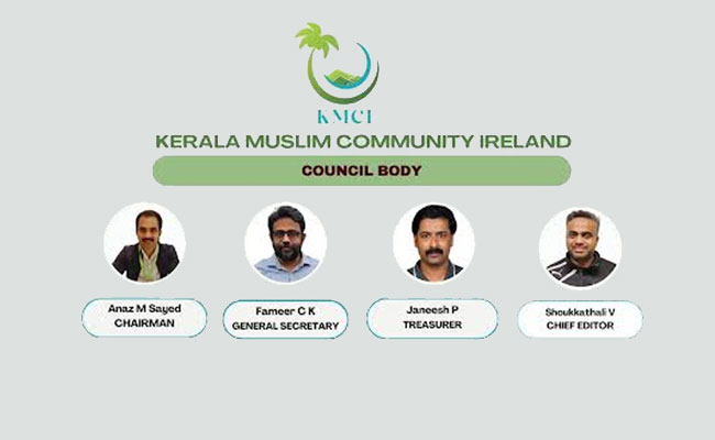 കേരള മുസ്ലിം കമ്മ്യൂണിറ്റി അയർലണ്ടിൻറെ (KMCI) പുതിയ കൌൺസിൽ ബോഡി രൂപീകരിച്ചു. അയർലൻഡിൽ വിവിധ കൗണ്ടികളിൽ നിന്നുള്ള 15 അംഗ കൗൺസിൽ ബോഡിയെ നയിക്കുന്നത് ശ്രീ. അനസ് സയിദും (ചെയർമാൻ) ശ്രീ. ഫമീർ സി.കെ യും (ജനറൽ സെക്രട്ടറി) ആണ്.