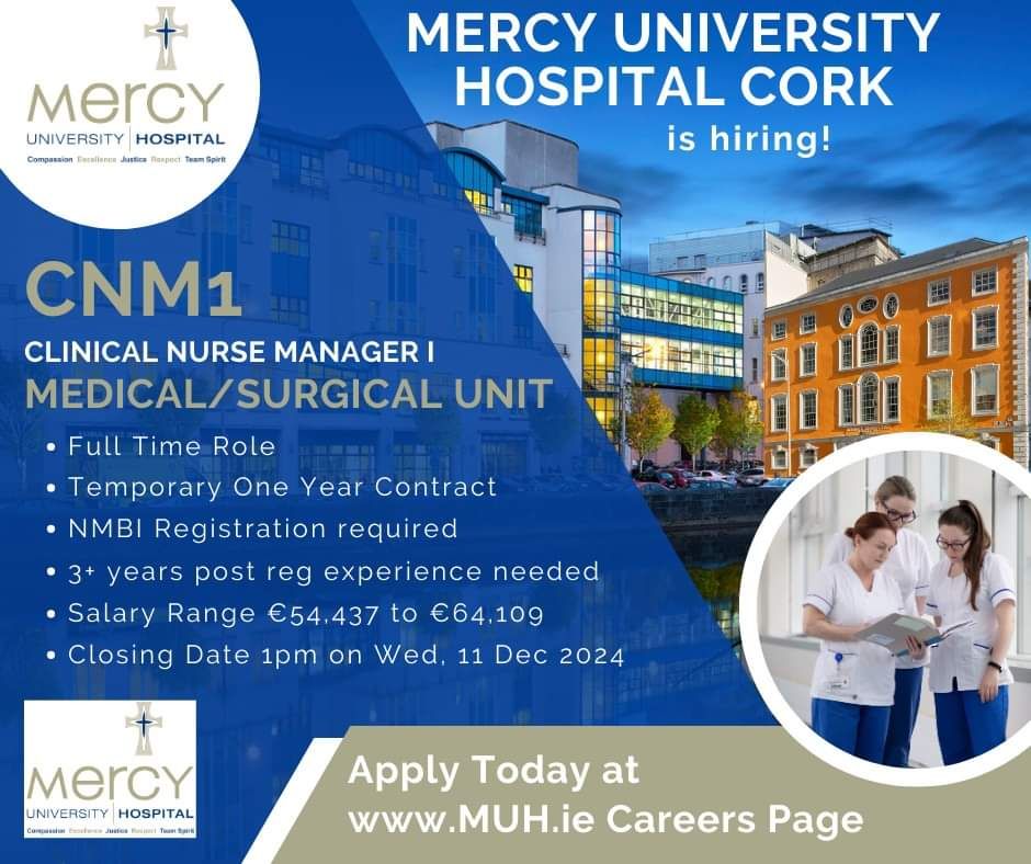 അയര്ലണ്ടിലെ കോര്ക്ക് മേഴ്സി യുണിവേഴ്സിറ്റി ഹോസ്പിറ്റലില് അവസരം.