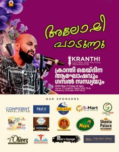 മെയ്ദിന പരിപാടിയിലേക്ക് ഏവരെയും സ്വാഗതം ചെയ്യുന്നതായി ക്രാന്തി