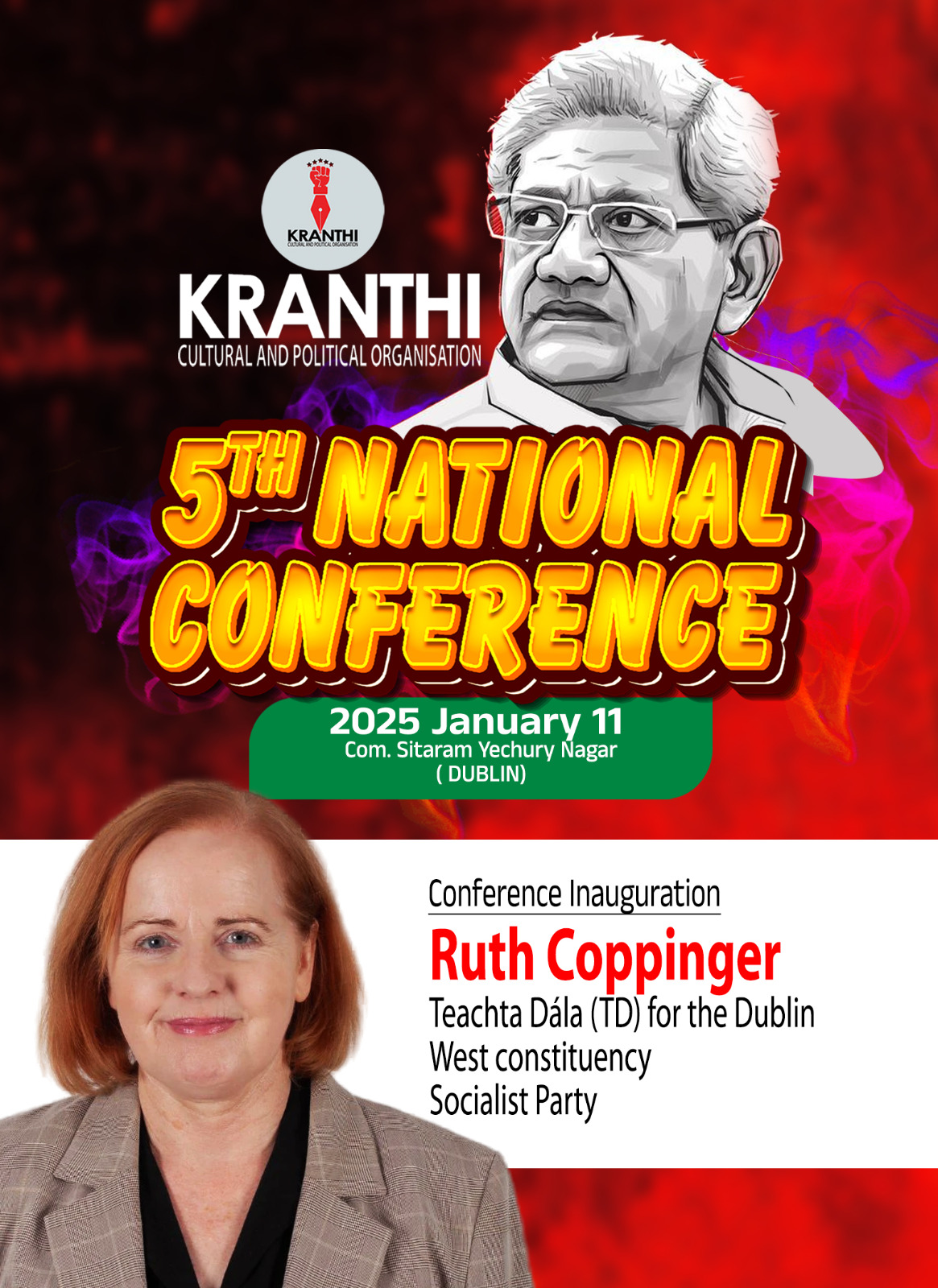 ഡബ്ലിൻ: അയര്ലണ്ടിലെ ഇടതുപക്ഷ പുരോഗമ സാംസ്കാരിക സംഘടനയായ ക്രാന്തിയുടെ അഞ്ചാമത് കേന്ദ്ര സമ്മേളനത്തിന് ഡബ്ലിൻ ഒരുങ്ങുന്നു. 2025 ജനുവരി 11 ശനിയാഴ്ച സഖാവ്. സീതാറാം യെച്ചൂരി നഗറിൽ