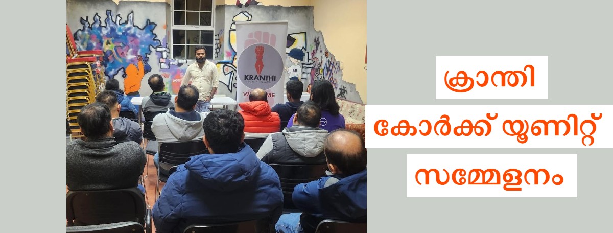 ക്രാന്തി അയർലണ്ട് അഞ്ചാമത് ദേശീയ സമ്മേളത്തിനു മുന്നോടിയായ് ക്രാന്തി കോർക്ക് സമ്മേളനം നടത്തപ്പെട്ടു. കോർക്ക് Kerry Pike community ഹാളിൽ ഡിസംബർ 7 ശനിയാഴ്ച നടന്ന സമ്മേളനം ക്രാന്തി കേന്ദ്ര കമ്മിറ്റി സെക്രെട്ടറി സ. ഷിനിത് ഉദ്ഘാടനം
