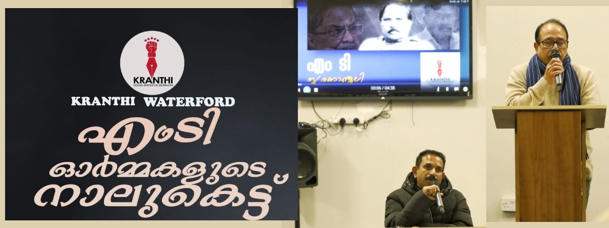 എം. ടി വാസുദേവൻ നായരുടെ ഓർമ്മകൾക്ക് മുൻപിൽ ബാഷ്പാഞ്ജലികൾ അർപ്പിച്ചുകൊണ്ട് ക്രാന്തി വാട്ടർഫോർഡ് യൂണിറ്റ് അനുസ്മരണ പരിപാടി സംഘടിപ്പിച്ചു.