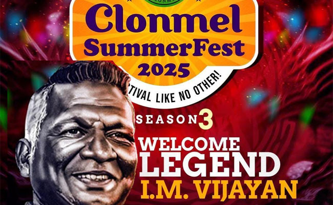 ക്ലോൺമേൽ , ടിപ്പററി, അയര്ലണ്ട്: ഐറിഷ് മണ്ണിൽ ഇന്ത്യൻ കായികമേളയുടെ മഹത്തായ മുഹൂർത്തമായി മാറുകയാണ് ഈ ആഗസ്റ്റ് 2-ലെ സുദിനം. ടിപ്പ് ഇന്ത്യൻ കമ്മ്യൂണിറ്റി ഒരുക്കുന്ന Clonmel Summer Fest 2025-ന്റെ പ്രധാന ആകർഷണമായി, ഇന്ത്യൻ ഫുട്ബോളിന്റെ അതുല്യതാരവും രാജ്യം പത്മശ്രീ നൽകി ആദരിച്ച വ്യക്തിയുമായ ശ്രീ. ഐ.എം. വിജയൻ ക്ലോൺമേലിൽ എത്തുന്നു.
