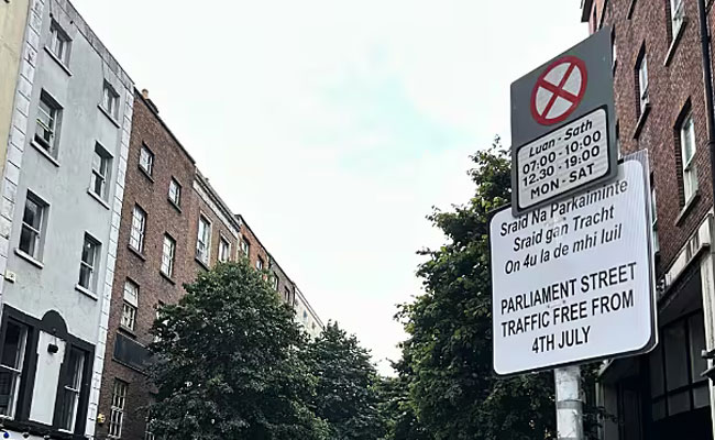 ഡബ്ലിനിലെ Temple Bar-ലുള്ള Parliament Street-ല് കാറുകള്ക്കുള്ള നിരോധനം നിലവില് വന്നു. കാല്നടയാത്രക്കാര്ക്കും, സൈക്കിള് യാത്രികര്ക്കും മാത്രമേ ഇനി ഇവിടെ പ്രവേശനമുണ്ടാകുകയുള്ളൂ. പലതവണയായുള്ള പരീക്ഷണ നടപടികള്ക്ക് ശേഷമാണ് സിറ്റി കൗണ്സില് തീരുമാനമെടുത്തത്. ജൂലൈ 4 മുതല് നിയന്ത്രണം നിലവില് വന്നു.