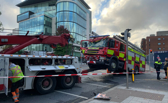 ഡബ്ലിനില് ഫയര് എഞ്ചിനും ബസും കൂട്ടിയിടിച്ചുണ്ടായ അപകടത്തില് നിരവധി ഫയര് ഫൈറ്റര്മാര്ക്കും, ബസ് ഡ്രൈവര്ക്കും പരിക്ക്. ഞായറാഴ്ച ഉച്ചയ്ക്ക് 2 മണിയോടെയാണ് ലോവര് മൗണ്ട് സ്ട്രീറ്റില് വച്ച് അപകടമുണ്ടായത്.