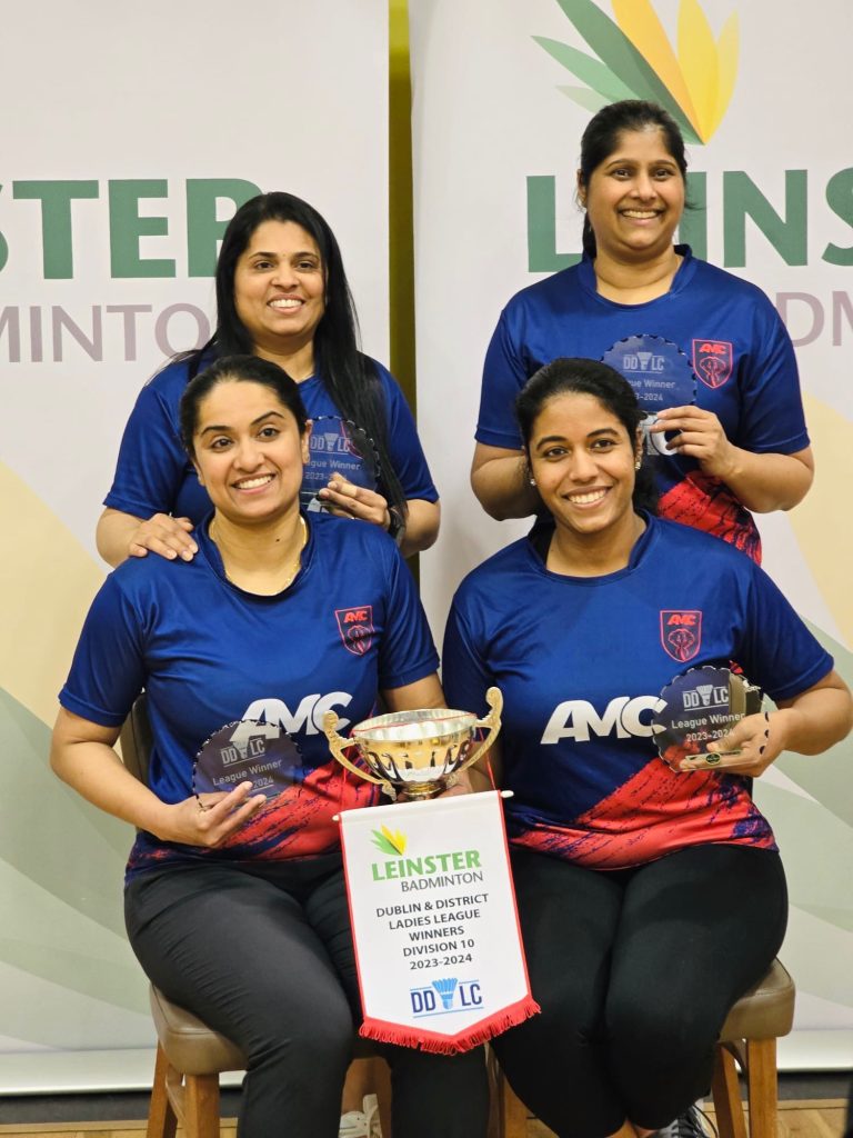 ലെയ്ൻസ്റ്റർ ബാഡ്മിൻ്റണിൻ്റെ ഡബ്ലിൻ & ഡിസ്ട്രിക്റ്റ് ലേഡീസ് ലീഗിൽ ഡിവിഷൻ 10-ൽ AMC ജേതാക്കളായി. ഏപ്രിൽ 26-ന് വെള്ളിയാഴ്ച Terenure ബാഡ്മിൻ്റൺ സെൻ്ററിൽ നടന്ന ഫൈനലിൽ ശക്തരായ എതിരാളികളായ എച്ച്എസ്ഇയെ തോൽപിച്ചാണ് അവർ മികച്ച വിജയം നേടിയത്.