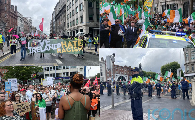 ഞായറാഴ്ച ഡബ്ലിന് നഗരത്തില് വംശീയവിരുദ്ധ റാലിയും, കുടിയേറ്റ വിരുദ്ധ പ്രകടനവും നടന്നു. ഉച്ചയോടെ നടന്ന റാലികളില് പ്രശ്നങ്ങളുണ്ടാകാതിരിക്കാന് ഗാര്ഡ ഇരു റാലിക്കാരെയും ബാരിക്കേഡുകള് വച്ച് തരംതിരിച്ചു. O’Connell Bridge കുറച്ചുസമയത്തേയ്ക്ക് അടച്ചിടുകയും ചെയ്തു.