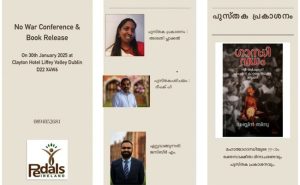 United Nations മുന്നോട്ട് വെക്കുന്ന ആഗോള പൗരന്റെ ഉത്തരവാദിത്വവും Sustainable Development Goals ഉം ലക്ഷ്യമാക്കി പ്രവർത്തിക്കുന്ന പെഡൽസ് എന്ന സംഘടന യുടെ നേതൃത്വത്തിലാണ് യുദ്ധത്തിനെതിരെയുള്ള സമ്മേളനവും പുസ്തക പ്രകാശനവും നടത്തുന്നത്. Scattered Innocence (Indiwood award), Burqa, Pranayam എന്നീ കവിത സമാഹാരം പുറത്തിറക്കിയ കവിയത്രി അശ്വതി പ്ലാക്കൽ ആണ് പുസ്തകത്തിൻ്റെ പ്രകാശനം നിർവഹിക്കുന്നത്. Queens University Belfast ലെ School of Arts, English and Languages ലെ Assistant Professor ജസ്ബീർ എം പുസ്തകം ഏറ്റുവാങ്ങും.