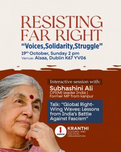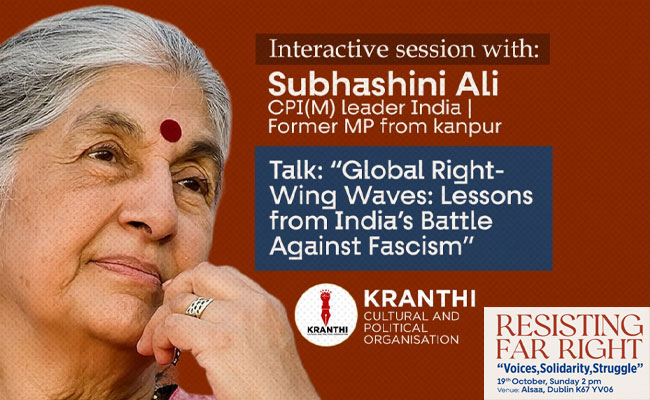 അയർലൻഡ് ഉൾപ്പെടെ ആഗോളതലത്തിൽ വർദ്ധിച്ചുവരുന്ന തീവ്ര വലതുപക്ഷ പ്രവർത്തനങ്ങൾക്കെതിരെയും ബോധപൂർവ്വം വലതുപക്ഷം നടത്തുന്ന നുണപ്രചരണങ്ങൾക്കെതിരെയും ആഗോളതലത്തിൽ പൊരുതുന്ന ശബ്ദങ്ങളെ ക്രാന്തി ഒരുമിപ്പിക്കുന്നു. ക്രാന്തി തീവ്ര-വലതുപക്ഷ നയങ്ങളെ കുറിച്ച് സംഘടിപ്പിക്കുന്ന സംവാദ സദസ്സിൽ സിപിഎമ്മിന്റെ മുൻ പോളിറ്റ് ബ്യൂറോ മെമ്പറും കാൺപൂർ എംപിയും ആയിരുന്ന സുഭാഷിണി അലി മുഖ്യാതിഥിയാകും.
