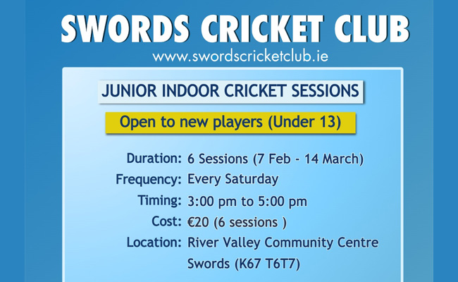 അയര്ലണ്ടിലെ പ്രവാസികള്ക്കിടയില് ഏറെ പ്രചാരം നേടിയ സ്വോര്ഡ്സ് ക്രിക്കറ്റ് ക്ലബ്ബ്, കുട്ടികള്ക്കായി പ്രത്യേക പരിശീലനമാരംഭിക്കുന്നു. 13 വയസിന് താഴെയുള്ള കുട്ടികള്ക്കായാണ് ജൂനിയര് ഇന്ഡോര് ക്രിക്കറ്റ് സെഷനുകള് ഒരുക്കുന്നത്.