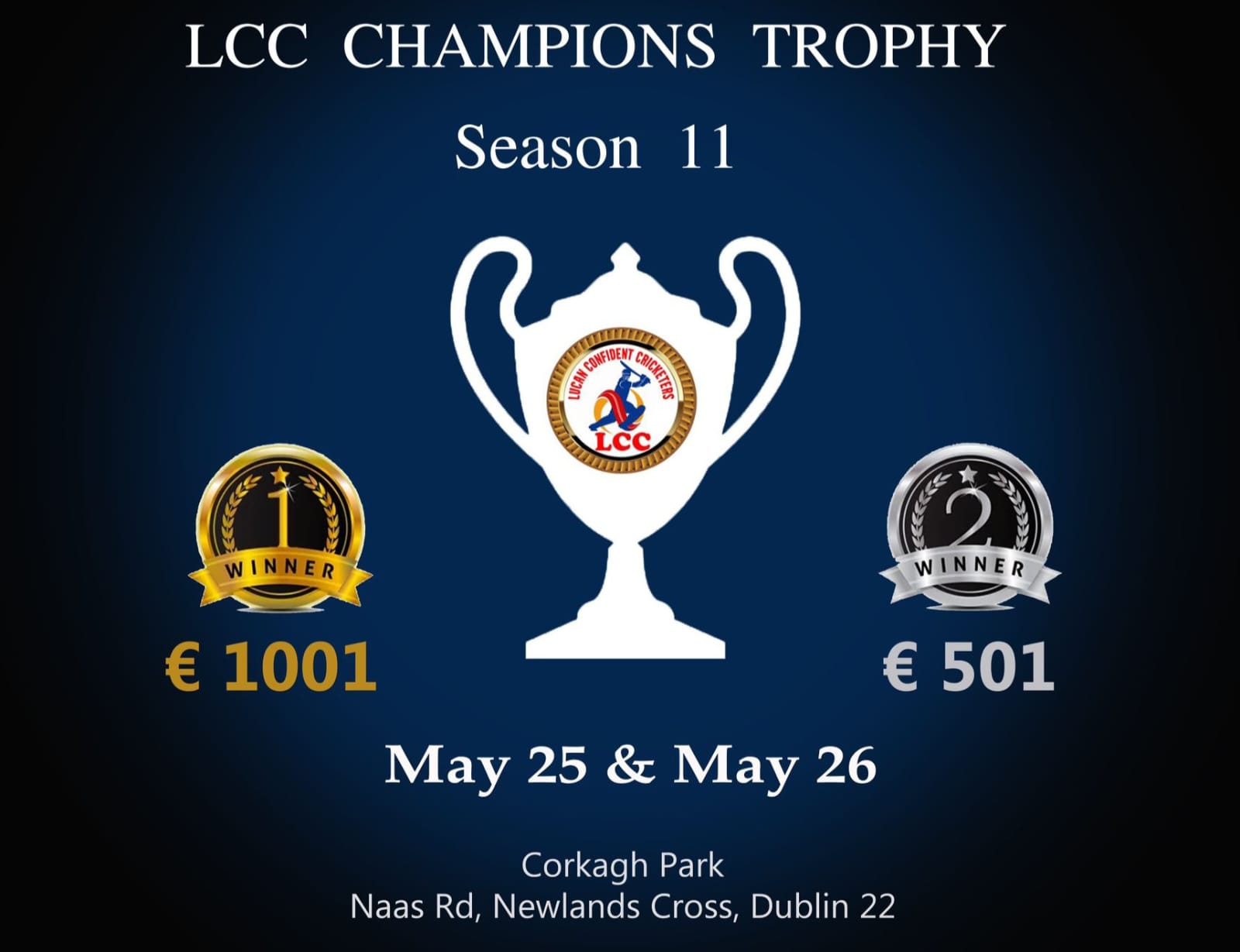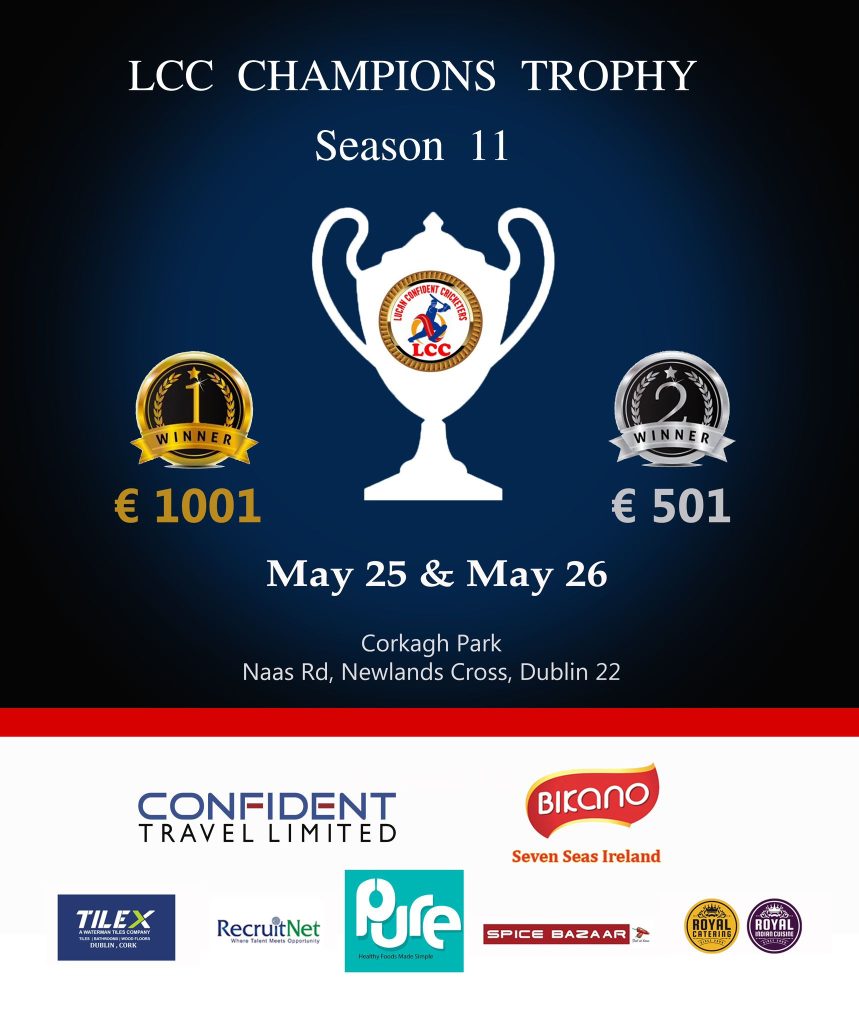 ഡബ്ലിൻ : ലൂക്കൻ കോൺഫിഡന്റ് ക്രിക്കറ്റേഴ്സ് ചാമ്പ്യൻസ്ട്രോഫി ക്രിക്കറ്റ് ടൂർണമെന്റ് ഈ വരുന്ന മെയ് 25, 26 തീയതികളിൽ ഡബ്ലിനിലുള്ള കോർക്കാ പാർക്ക് ക്രിക്കറ്റ് ഗ്രൗണ്ടിൽ വച്ച് നടത്തപ്പെടുന്നു. കഴിഞ്ഞ വർഷങ്ങളിൽ നിന്നും വ്യത്യസ്തമായി അയർലണ്ടിലെ പരമാവധി ക്രിക്കറ്റ് ടീമുകളെ അണിനിരത്തിക്കൊണ്ടാണ് ഇത്തവണത്തെ ചാമ്പ്യൻസ്ട്രോഫി മത്സരങ്ങൾ അണിയിച്ചൊരുക്കുന്നതെന്ന് സംഘാടകർ അറിയിച്ചു.