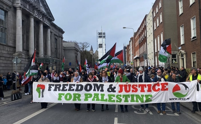 ഡബ്ലിനിൽ പലസ്തീൻ ജനതക്ക് ഐക്യദാര്ഡ്യം പ്രഖ്യാപിച്ച് നടന്ന നാഷണൽ ഡെമൺസ്ട്രേഷൻ ഫോർ ഫലസ്തീൻ പരിപാടിയിൽ ആയിരങ്ങൾ പങ്കെടുത്തു.
