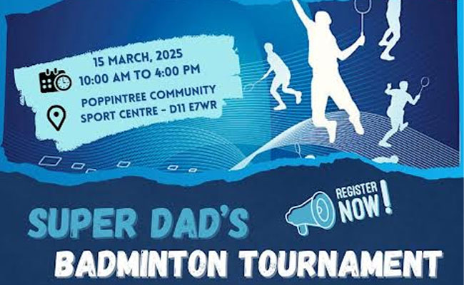 സൂപ്പർ ഡാഡ് മത്സരത്തിന്റെ രജിസ്ട്രേഷൻ രാവിലെ കൃത്യം 9.30-ന് ആരംഭിക്കും. ഡബ്ലിൻ റീജിയൻ പിതൃവേദി ഒരുക്കുന്ന സൂപ്പർ ഡാഡ് ബാഡ്മിന്റൺ മത്സരത്തിലേക്ക് ഏവരെയും സ്വാഗതം ചെയ്യുന്നതായി പിതൃവേദിയുടെ റീജണൽ ഡയറക്ടർ റവ .ഫാ സിജോ ജോൺ വെങ്കിട്ടക്കൽ അറിയിച്ചു.