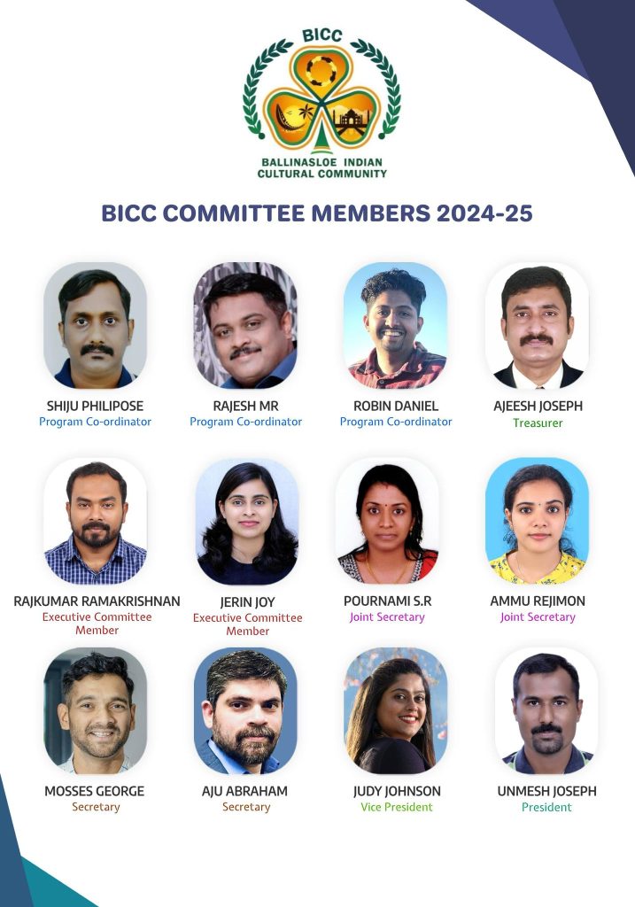 ബാലിനസ്ലോ ഇന്ത്യൻ കൾച്ചറൽ കമ്മ്യൂണിറ്റി ഭാരവാഹികളെ തിരഞ്ഞെടുത്തു.