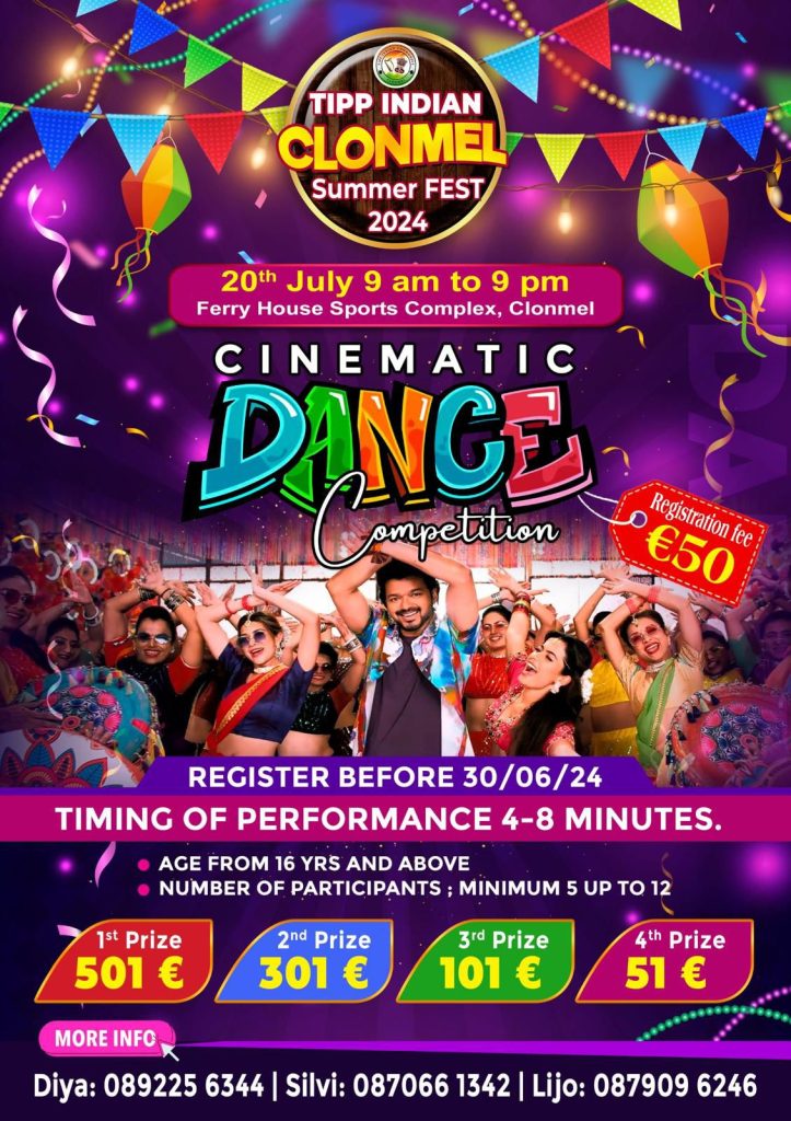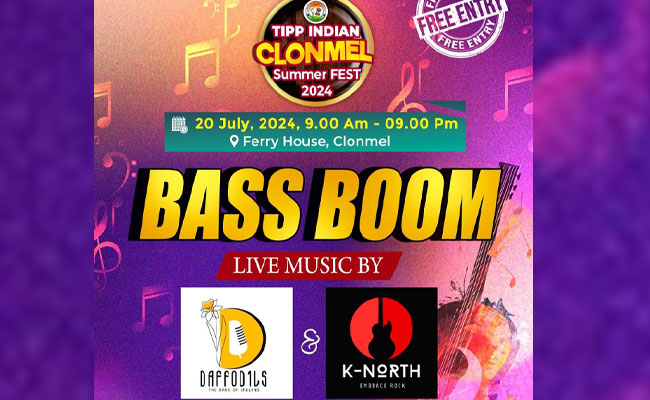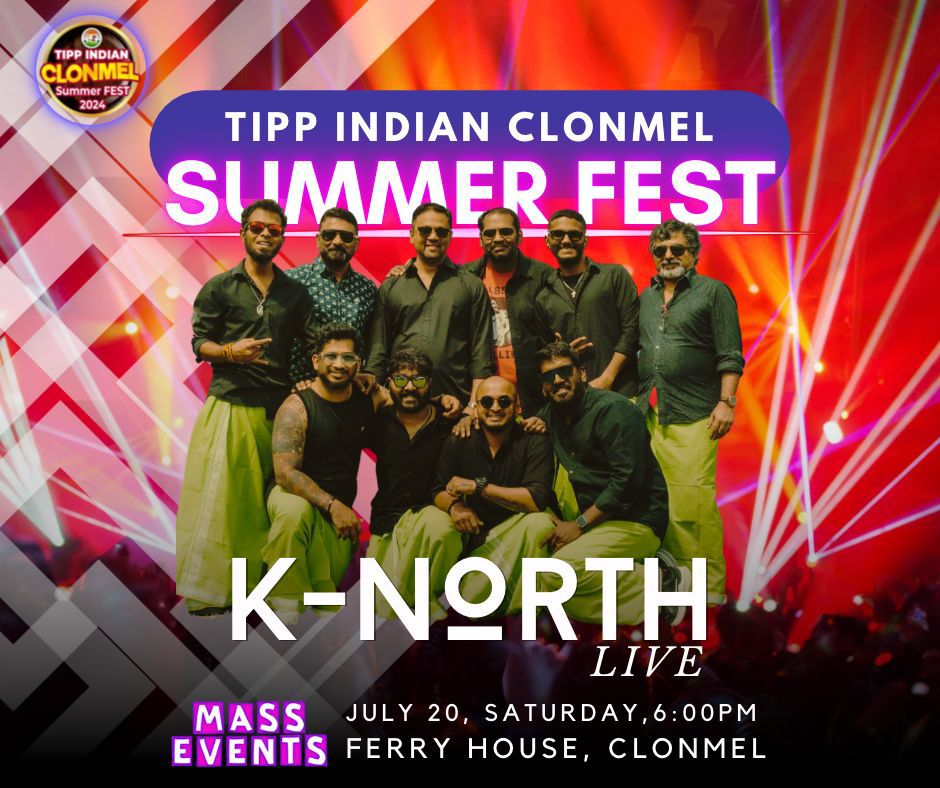 ക്ലോൺമേൽ: ടിപ് ഇന്ത്യൻ കമ്മ്യൂണിറ്റിയുടെ നേതൃത്വത്തിൽ നടത്തുന്ന സമ്മർ ഫെസ്റ്റ് 2024-നോടനുബന്ധിച്ച് മെഗാ സംഗീത നിശ ഒരുക്കുന്നു. അയർലണ്ടിൽ മലയാളികൾക്ക് സുപരിചിതമായ പ്രമുഖ ബാന്റുകൾക്കൊപ്പം, അയർലണ്ടിലെ തന്നെ പ്രമുഖ ഐറിഷ് ബാന്റും മാറ്റ് ഉരയ്ക്കുന്നു എന്നുള്ളതാണ് ഇതിൻറെ ഏറ്റവും വലിയ പ്രത്യേകത.
