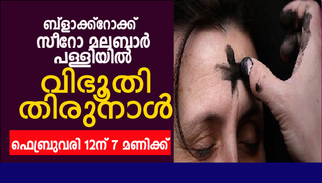 ഡബ്ലിൻ : സിറോ മലബാർ കാത്തോലിക് കമ്മ്യൂണിറ്റി ബ്ലാക്ക്റോക്ക് മാസ്സ് സെന്ററിൽ ഫെബ്രുവരി 12 ന് തിങ്കളാഴ്ച വൈകിട്ട് 7 മണിക്ക് ഗാർഡിയൻ ഏഞ്ചൽ ചർച്ചിൽ വച്ച് വലിയ നോമ്പ് കാലത്തിന്റെ ആരംഭം കുറിക്കുന്ന വിഭൂതി തിരുന്നാൾ ആഘോഷിക്കുന്നു.അന്നേ ദിവസം വിശുദ്ധ കുര്ബാനയും പ്രത്യേക പ്രാര്ഥനകളും ഉണ്ടായിരിക്കും.