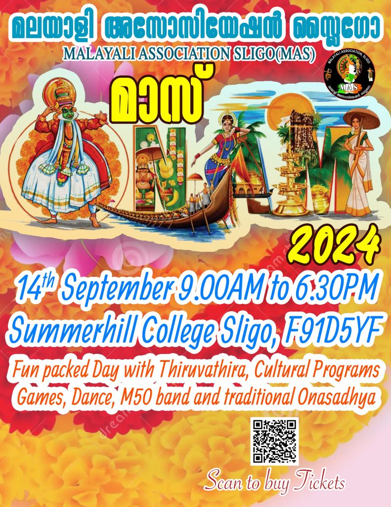 മലയാളി അസോസിയേഷൻ സ്ലൈഗോ (MAS)-യുടെ ഈ വർഷത്തെ ഓണാഘോഷം “മാസ് ഓണം 2024” സെപ്റ്റംബർ 14-ന് സമ്മർ ഹിൽ കോളേജ് സ്ലൈഗോയിൽ വെച്ച് നടത്താൻ തീരുമാനിച്ചു അയർലണ്ടിലെ തന്നെ മികച്ച ബാൻഡ് ആയ M50 ഒരുക്കുന്ന സംഗീത വിരുന്നും, അസോസിയേഷനിൽ ഉള്ള കലാകാരൻമാരും കലാകാരികളും ഒരുക്കുന്ന വിവിധ കലാപരിപാടികളും ഇതോടൊപ്പം ഉണ്ടായിരിക്കും.