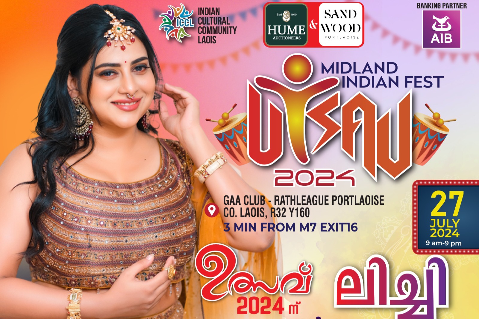 Indian Cultural Community Laois-ന്റെ നേതൃത്വത്തിൽ നടക്കുന്ന മിഡ്ലാൻഡ് ഇന്ത്യൻ ഫെസ്റ്റ് ‘ഉത്സവ് 2024’-ൽ അതിഥിയായി പ്രശസ്ത സിനിമ താരം അന്ന രേഷ്മ രാജൻ (ലിച്ചി) എത്തുന്നു. ജൂലൈ 27 ന് കൗണ്ടി ലീഷിലെ Rathleague Portloise-ലുള്ള GAA Club-ൽ വച്ചാണ് ‘ഉത്സവ് 2024’ അരങ്ങേറുന്നത്.