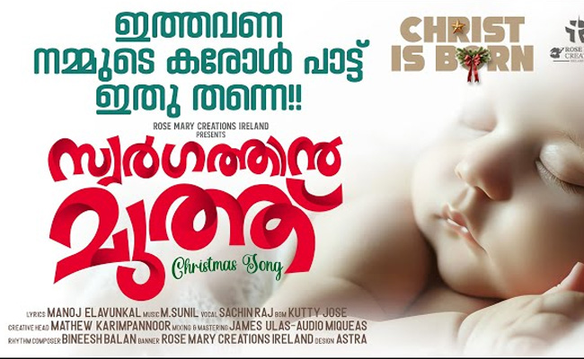 അയര്ലണ്ട് മലയാളികള് ഒരുക്കിയ ‘സ്വര്ഗ്ഗത്തിന് മുത്ത്’ ക്രിസ്മസ് കരോള് ഗാനം യൂട്യൂബില് റിലീസ് ചെയ്തു. മനോജ് ഇളവുങ്കലിന്റെ വരികള്ക്ക് എം. സുനില് ഈണം പകര്ന്ന ഈ മനോഹരഗാനം ആലപിച്ചിരിക്കുന്നത് സച്ചിന് രാജ് ആണ്.