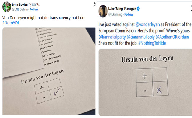 അതേസമയം അയര്ലണ്ടിന്റെ 14 എംഇപിമാരില് 10 പേരും ഉര്സുലയ്ക്ക് എതിരായാണ് വോട്ട് രേഖപ്പെടുത്തിയത്. Sinn Fein-ന്റെ Lynn Boylan തന്റെ ബാലറ്റ് പേപ്പറിന്റെ ഫോട്ടോ എക്സില് പങ്കുവയ്ക്കുകയും ചെയ്തു. ഇതില് ഉര്സുലയ്ക്ക് എതിരായി വോട്ട് രേഖപ്പെടുത്തിയതായി കാണാം. ഇസ്രായേല്- പലസ്തീന് യുദ്ധത്തില്, പലസ്തീനിലെ കുരുതി തടയാന് ഉര്സുല വേണ്ടതൊന്നും ചെയ്തില്ല എന്ന കാരണത്താലാണ് Boylan എതിര് വോട്ട് രേഖപ്പെടുത്തിയത്. അയര്ലണ്ടിന്റെ സ്വതന്ത്ര എംഇപിയായ Luke ‘Ming’ Flanagan, ലേബര് പാര്ട്ടി എംഇപി Aodhán Ó Ríordáin എന്നിവരും സമാനമായ ബാലറ്റ് ഫോട്ടോകള് എക്സില് പങ്കുവച്ചിട്ടുണ്ട്. അയര്ലണ്ടിലെ നാല് Fine Gael എംഇപിമാര് മാത്രമാണ് ഉര്സുലയ്ക്ക് അനുകൂലമായി വോട്ട് രേഖപ്പെടുത്തിയത്.
