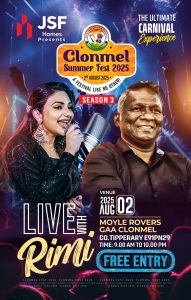 പ്രശസ്ത മലയാളം ഗായിക റിമി ടോമിയും ട്രൂപ്പും ക്ലോൺമെൽ സമ്മർ ഫെസ്റ്റ് 2025-ൽ തങ്ങളുടെ ലൈവ് മ്യൂസിക് ഷോയോടെ രംഗത്തെത്തും. മികച്ച സംഗീത സായാഹ്നം ഒരുക്കുന്ന റിമിയുടെ പ്രകടനം ഈ വർഷത്തെ സമ്മർ ഫെസ്റ്റിന്റെ പ്രധാന ആകർഷണമാണ്. ടിക്കറ്റോടെ മാത്രം കാണാൻ കഴിയുന്ന റിമിയുടെ പ്രകടനം, ഈ ഉത്സവത്തിൽ അയർലണ്ട് മലയാളികൾക്ക് സൗജന്യമായി ആസ്വദിക്കാൻ അവസരം ഒരുക്കിയിരിക്കുകയാണ് Tipp indian Community Clonmel.കൂടാതെ പ്രശസ്ത keytarist സുമേഷ് കൂട്ടിക്കൽ, തന്റെ കീറ്റാർ (Keytar) പെർഫോർമൻസുമായി ക്ലോൺമെൽ സമ്മർ ഫെസ്റ്റിന്റെ വേദിയിൽ തിളങ്ങും.