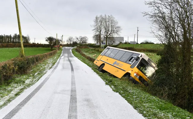 അതിശക്തമായ മഞ്ഞുവീഴ്ച തുടരുന്നതിനിടെ വടക്കന് അയര്ലണ്ടില് ഐസ് നിറഞ്ഞ റോഡില് നിന്നും തെന്നി കുട്ടികളുടെ സ്കൂള് ബസ് അപകടത്തില് പെട്ടു. Co Fermanagh-യിലെ Lisbellaw-യിലുള്ള Tattygare Road-ല് വച്ച് ഇന്ന് രാവിലെയാണ് സ്കൂള് കുട്ടികളുമായി പോകുകയായിരുന്ന ബസ് അപകടത്തില് പെട്ടത്. കഠിനമായ തണുപ്പ് കാരണം റോഡില് ഐസ് രൂപപ്പെട്ടതാണ് അപകടത്തിലേയ്ക്ക് നയിച്ചത്.