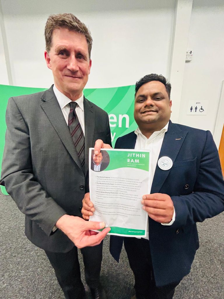 ലൂക്കനിലെ ഗതാഗത നയങ്ങളുമായി ബന്ധപ്പെട്ട നിര്ദ്ദേശങ്ങളുമായി ലൂക്കനിലെ ലോക്കല് കൗണ്സില് സ്ഥാനാര്ത്ഥിയായ അഡ്വ. ജിതിന് റാം തയ്യാറാക്കിയ പ്രകടനപത്രിക ഗതാഗതമന്ത്രിയായ ഈമണ് റയാന് പ്രകാശനം ചെയ്തു. വരുന്ന കൗണ്സില് തെരഞ്ഞെടുപ്പില് ഗ്രീന് പാര്ട്ടിയുടെ ടിക്കറ്റിലാണ് അയര്ലണ്ടിലെ ഇന്ത്യന് സമൂഹത്തിന് സുപരിചിതനായ ജിതിന് റാം മത്സരിക്കുന്നത്.
