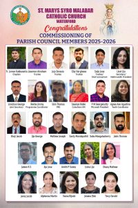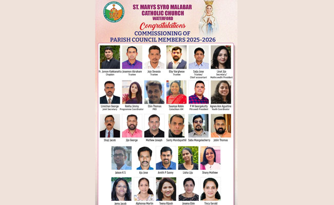 വാട്ടർഫോഡ് സെന്റ് മേരീസ് സീറോ മലബാർ കമ്മ്യൂണിറ്റിയുടെ പുതിയ പ്രതിനിധിയോഗം (പാരിഷ് കൗൺസിൽ) ചുമതല ഏറ്റെടുത്തു.