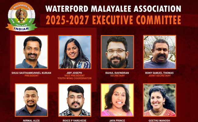വാട്ടർഫോർഡിലെയും പരിസരപ്രദേശങ്ങളിലും പ്രവാസി മലയാളി സമൂഹത്തിൽ കഴിഞ്ഞ പതിനേഴു വർഷക്കാലമായി സജീവമായി പ്രവർത്തിക്കുന്ന വാട്ടർഫോർഡ് മലയാളി അസോസിയേഷന്റെ പുതിയ ഭരണസമിതി അംഗങ്ങളെ തിരഞ്ഞെടുത്തു. വാർഷിക പൊതുയോഗം തിരഞ്ഞെടുത്ത കമ്മിറ്റിയുടെ ആദ്യ യോഗമാണ് 2025- 2027 കാലാവധിയിലേക്കുള്ള ഭാരവാഹികളെ തിരഞ്ഞെടുത്തത്.