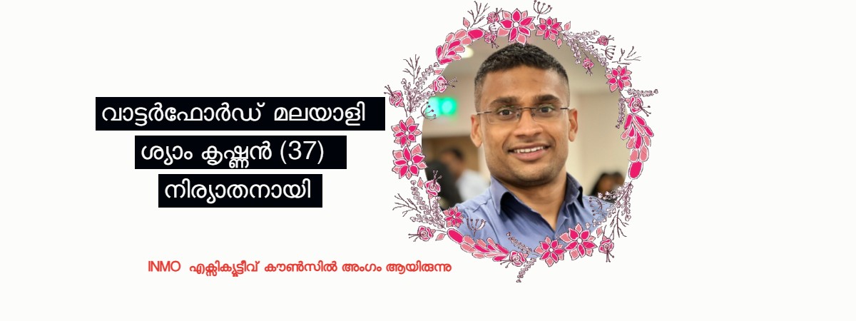 വാട്ടർഫോർഡ് മലയാളി ശ്യാം കൃഷ്ണൻ (37) നിര്യാതനായി .