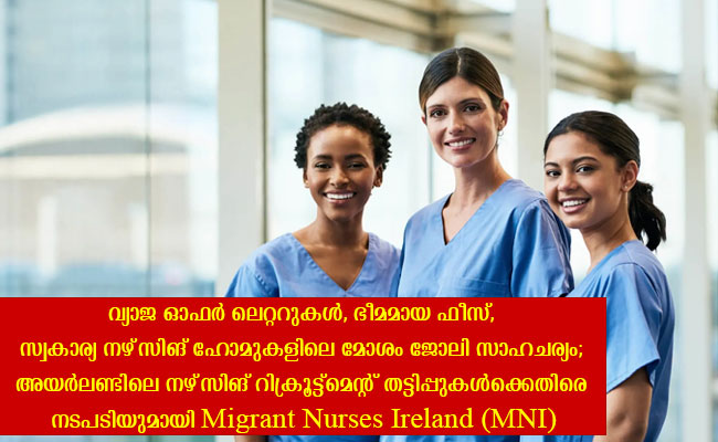 അയര്ലണ്ടില് നഴ്സിങ് ജോലി വാഗ്ദാനം ചെയ്ത് റിക്രൂട്ട്മെന്റ് സ്ഥാപനങ്ങള് നടത്തിവരുന്ന തട്ടിപ്പുകള്ക്കും, സ്വകാര്യ നഴ്സിങ് ഹോമുകളിലെ മോശം ജോലിസാഹചര്യത്തിനുമെതിരെ നടപടികളുമായി Migrant Nurses Ireland (MNI). ഇത്തരം നിരവധി പരാതികളാണ് തങ്ങള്ക്ക് ലഭിച്ചിരിക്കുന്നതെന്നും, ഇത് വിദേശത്ത് നിന്നും എത്തുന്ന നഴ്സുമാരെ വളരെ മോശമായാണ് ബാധിക്കുന്നതെന്നും MNI വ്യക്തമാക്കി.